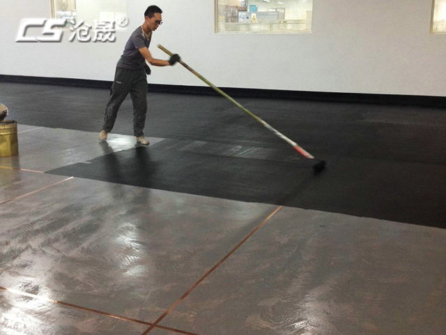 3.防靜電中涂:防靜電中涂將防靜電環(huán)氧材料加入適量的砂,用鏝刀將其均勻涂布一至二道;